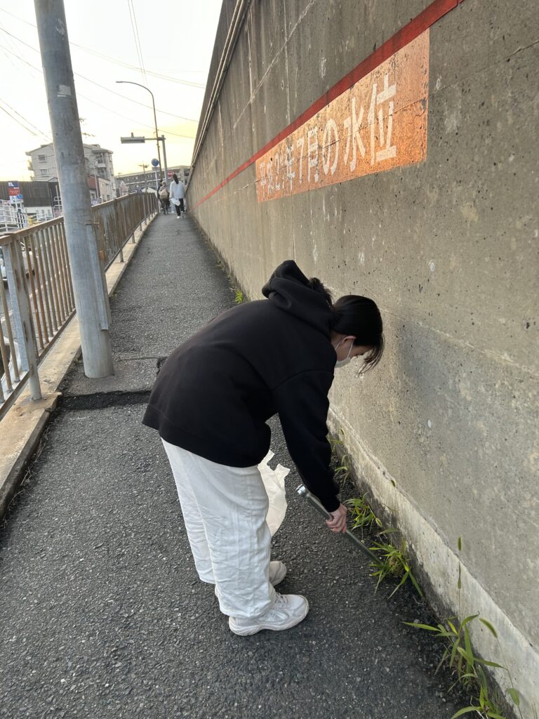 学生たちは、精華女子短期大学を中心に、桜ヶ丘広場公園から南八幡公園付近のエリアでゴミ拾いを実施しました。