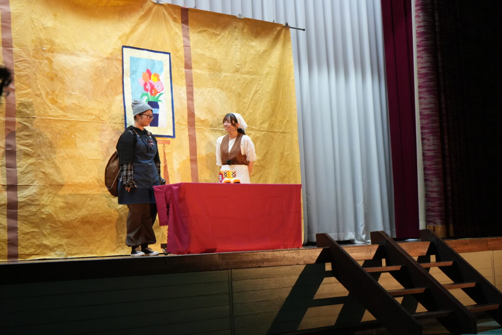 当日は、多くの親子や地域の皆様、高校生、本学の卒業生にもご来場いただき、会場は大変にぎわいました。学生たちは、夏休み前から準備を始め、連日遅い時間まで練習を重ねてきました。学園祭当日も朝早くから皆様をお迎えする準備を整え、心を込めて演じました。