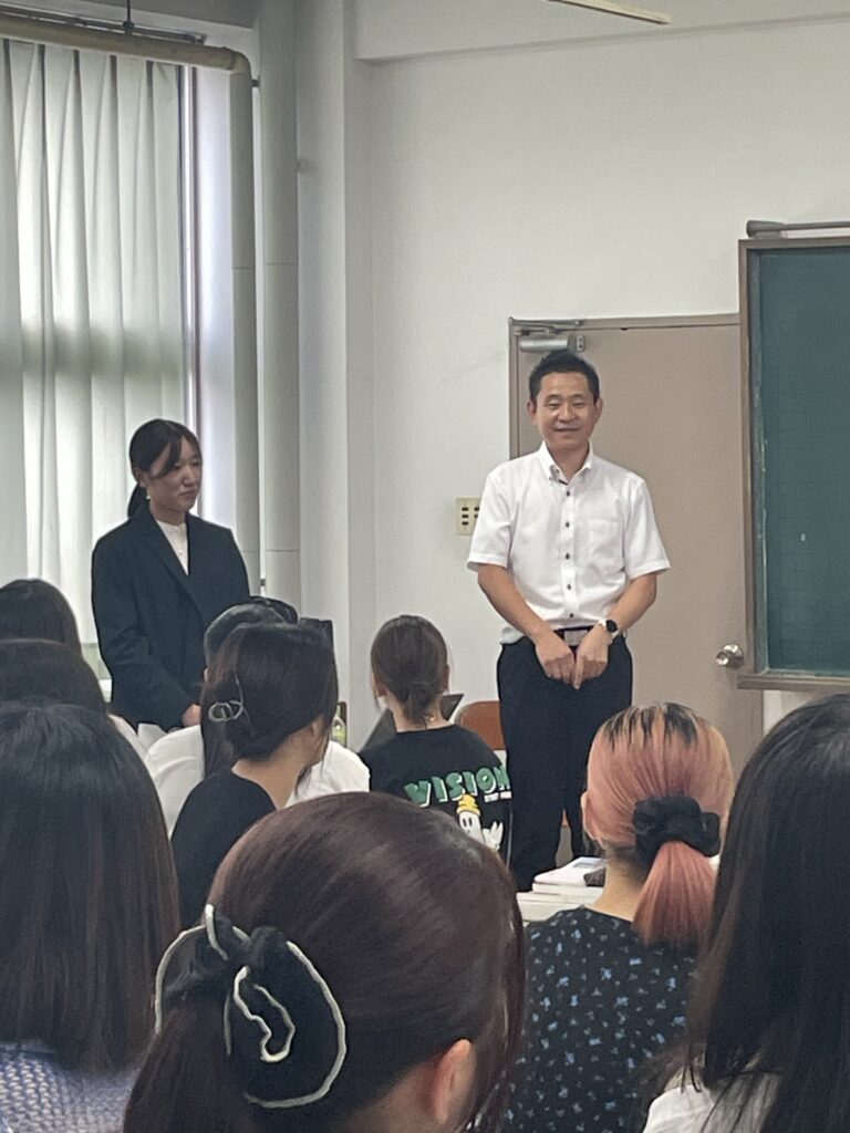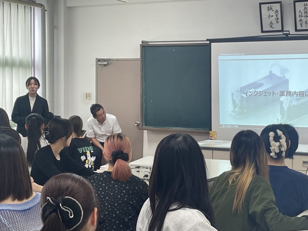 1年生の就職支援として、今回は京セラ鹿児島国分工場の方にお越しいただき企業紹介とグループワーク、そして京セラに就職した生活総合ビジネス専攻の卒業生が業務紹介と就活でのアドバイスをしてくださいました。企業紹介では業務内容は勿論、企業理念等貴重なお話を伺うことができ、これからの就活をするにあたりとても刺激を受けました。卒業生のリアルな話を聞けた事も学生にとってとても参考になり、より一層これからの学業や就活について真剣に考えるきっかけになりました。そして卒業生の社会での活躍をとても誇りに思います。